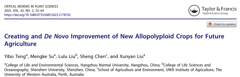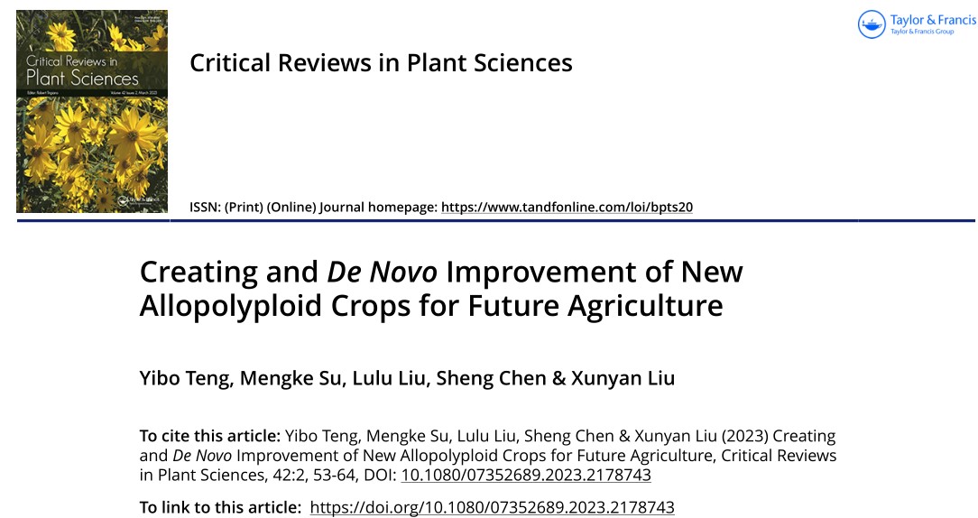 近日,老王论坛 刘训言副教授在植物科学领域知名期刊Critical Reviews in Plant Sciences发表题为Creating and De novo improvement of new allopolyploid crops for future agriculture的专题综述文章。Critical Reviews in Plant Sciences(2022影响因子:6.289,5年影响因子:9.078)创刊于1983年,由TAYLOR & FRANCIS INC出版商出版,收稿方向涵盖生物—植物科学全领域,行业细分领域中学术影响力较大,专业度认可很高。