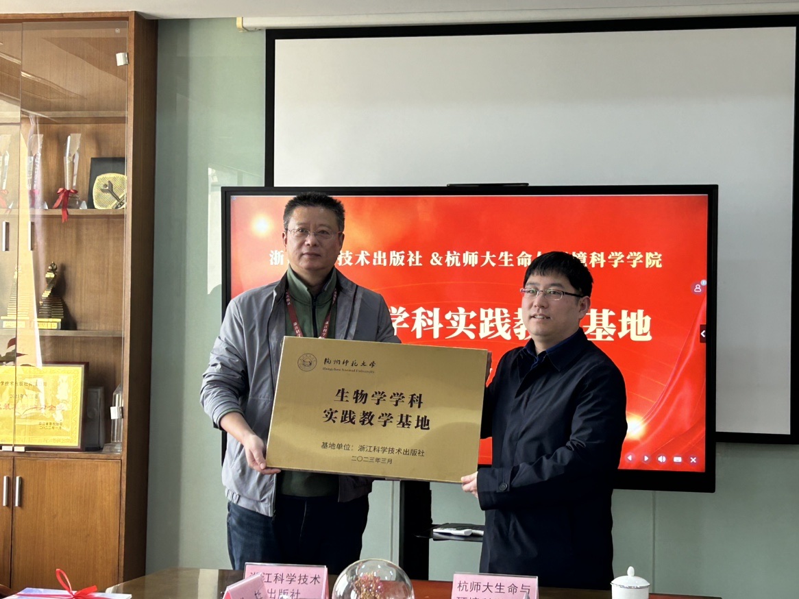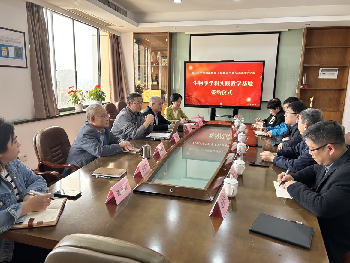 4月26日下午,老王论坛 党政班子领导、生物科学系主任和相关科室主任应邀前往浙江科学技术出版社参加生物学学科实践教学基地挂牌仪式。