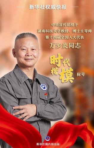 “时代楷模”发布仪式现场宣读了《中共中央宣传部关于授予万步炎同志“时代楷模”称号的决定》,播放了反映他先进事迹的短片,中央宣传部负责同志为万步炎同志颁发了“时代楷模”奖章和证书。中组部、教育部、科技部、自然资源部、湖南省委有关负责同志,以及科技工作者、高校师生代表等参加发布仪式。