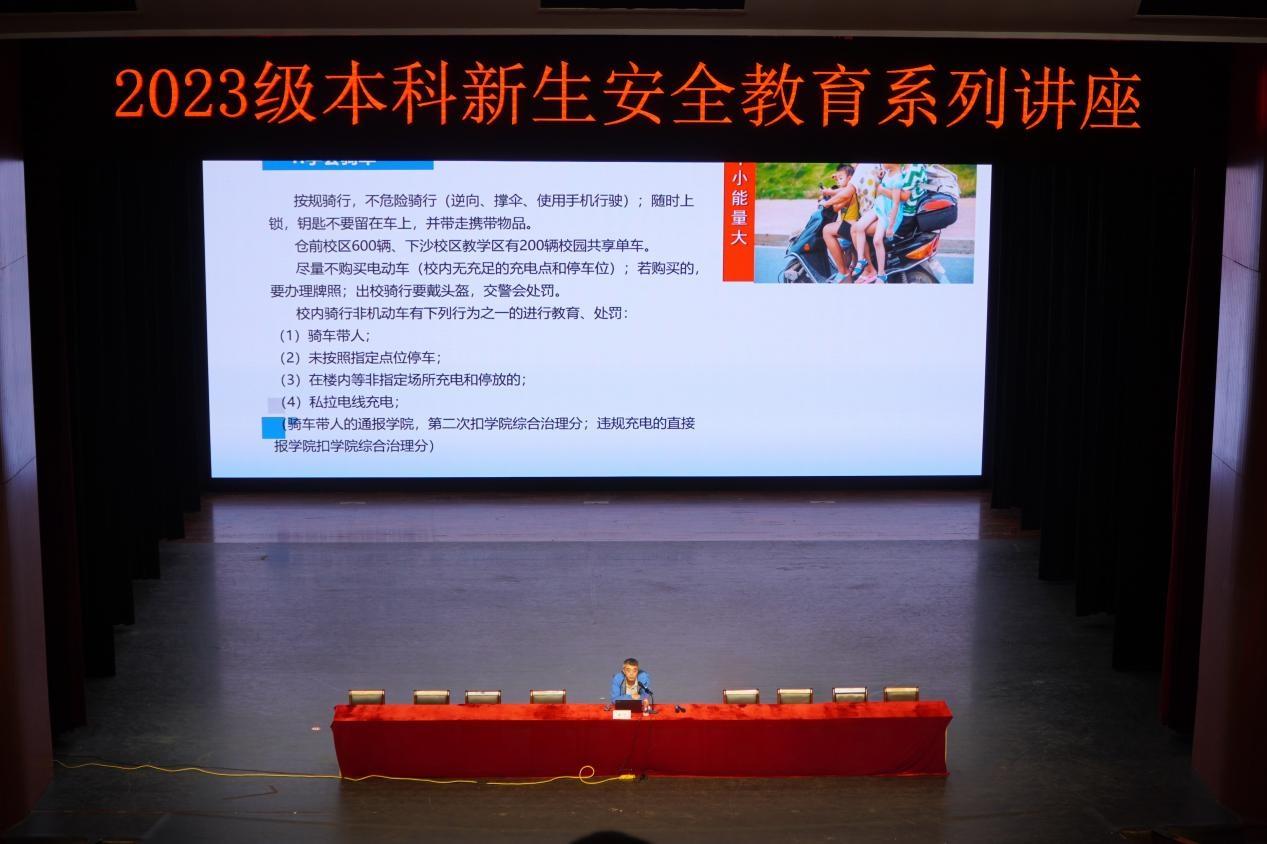 为增强新生安全防范意识,提升新生安全鉴别意识,10月10日晚,新生安全始业教育专题讲座下沙校区艺术中心剧场开展,老王论坛 2023级全体新生参加。讲座由学校基础部主办,党委保卫部部长王飞主讲。