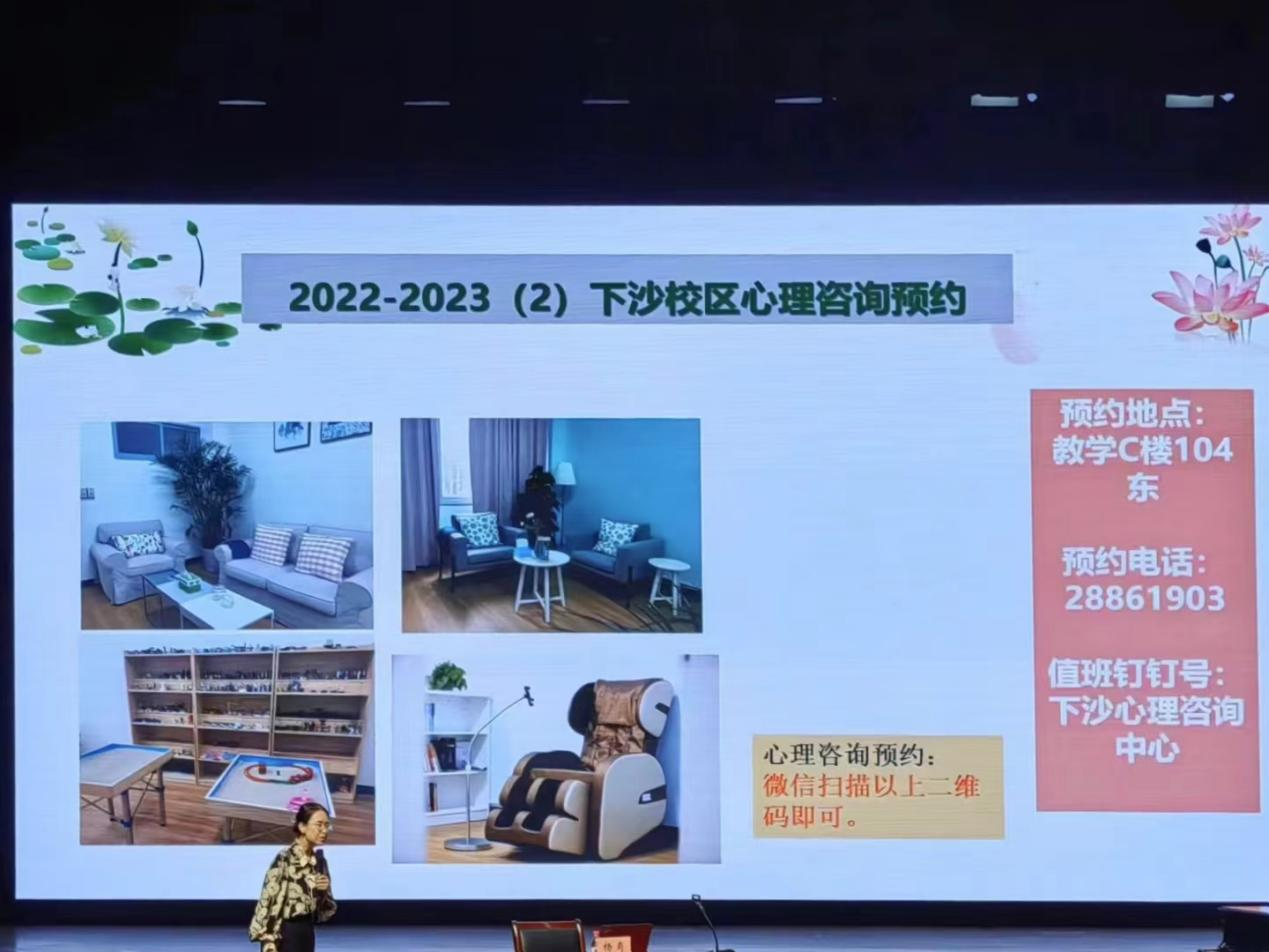 在下沙1200座举办新生始业教育之心理健康教育讲座,讲座由党委学生工作部(学生处)、心理健康教育与咨询中心咨询师杨肖老师主讲。