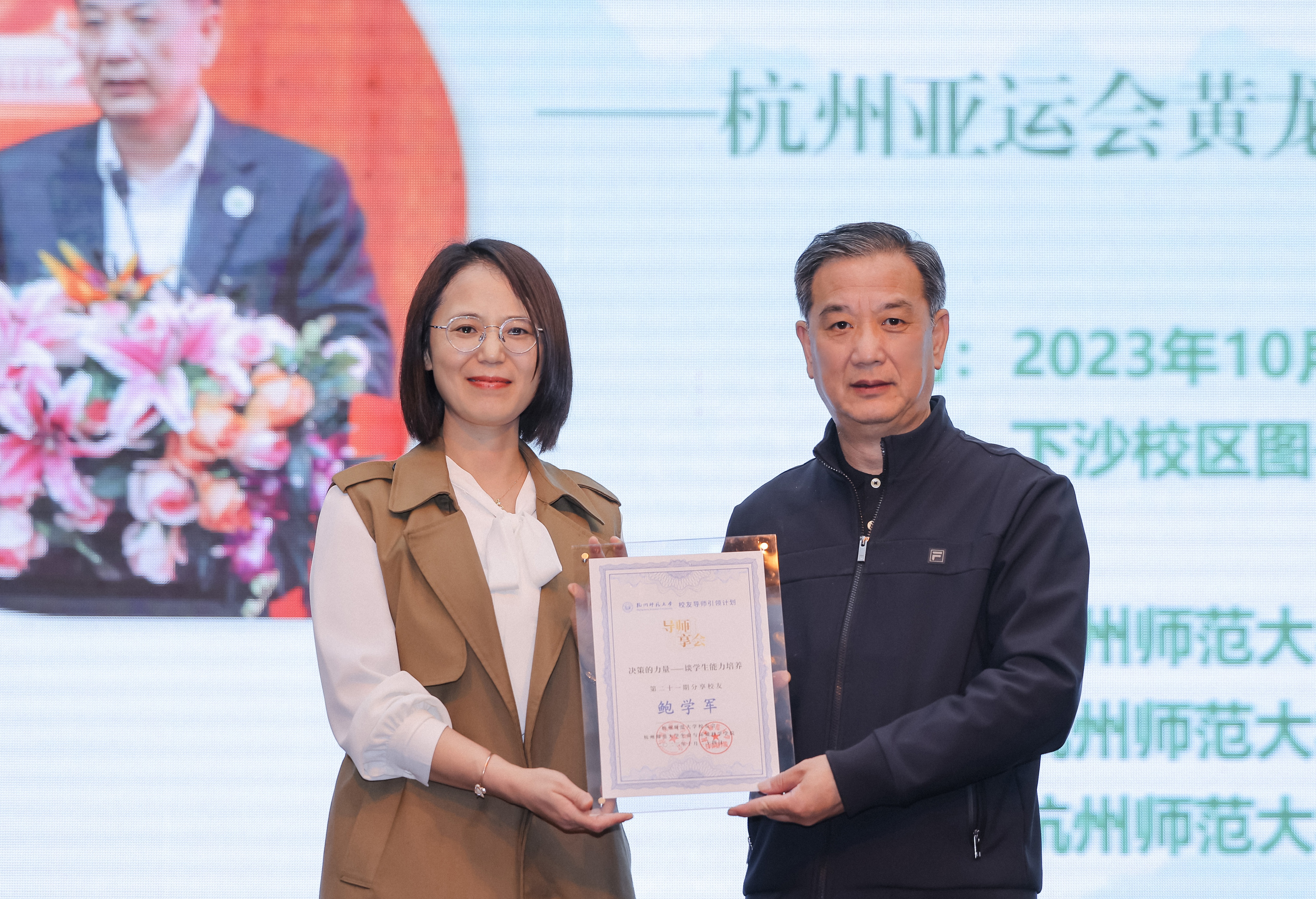 在提问环节,同学们踊跃提问,反响热烈,纷纷表示听了学长的讲座后,对于亚运会和领导力、决策力等方面有了进一步了解,会在日后学习、生活、工作中加强对自身能力的培养,不断学习实践,练就过硬本领,学习如何抓住主要矛盾解决问题,提升自己的决策能力。讲座后,学生代表为鲍学军学长送上母院学生亲手制作的“永生花”摆件。