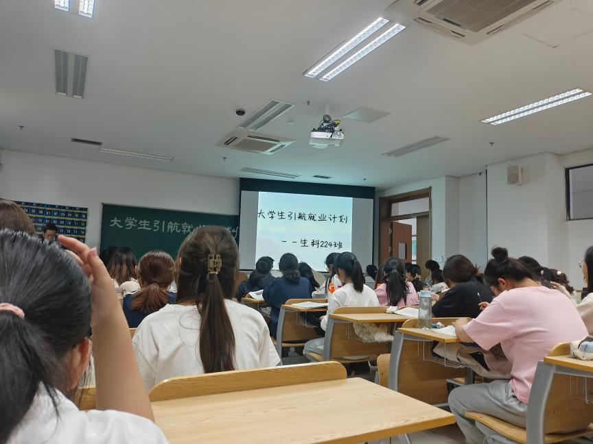 就业是民生之本,是青牛发展之基。为了帮助大学生了解就业行情,熟悉就业方式,方便早日为未来就业做计划,生科224班响应学校始终把大学生就业放在首位的号召,在2023年11月8日在仓前校区慎园举办了本学期的就业引航活动。