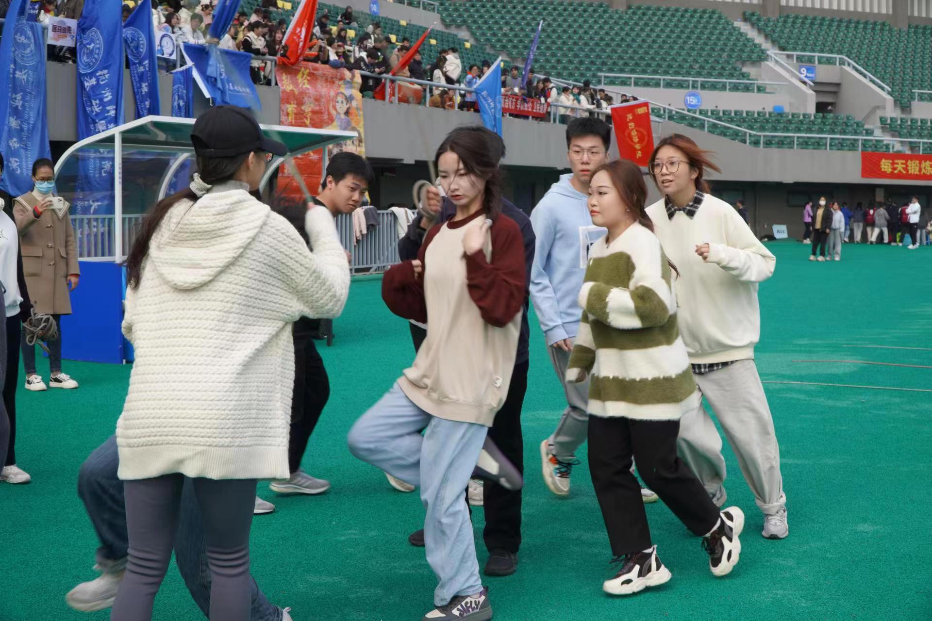 初冬阳光暖意逼人,赶走千万阴霾,绿茵操场,喧腾鼎沸,温和的日光照进每个人心中,一扫前几日因绵绵阴雨带来的压抑,所有人都透露着“我欲穿花寻路,直入白云深处,浩气展霓虹”的意气风发,我们有着不顾一切的勇气、敢赌敢拼的豪气、划破长空的的锐气。正青春,同学们都蓄势待发,拼尽一切力气,在学院的荣誉上再添一笔。奋斗者就在我们身边,我们有幸采访到了参加“8字”跳绳的魏璐璐同学。