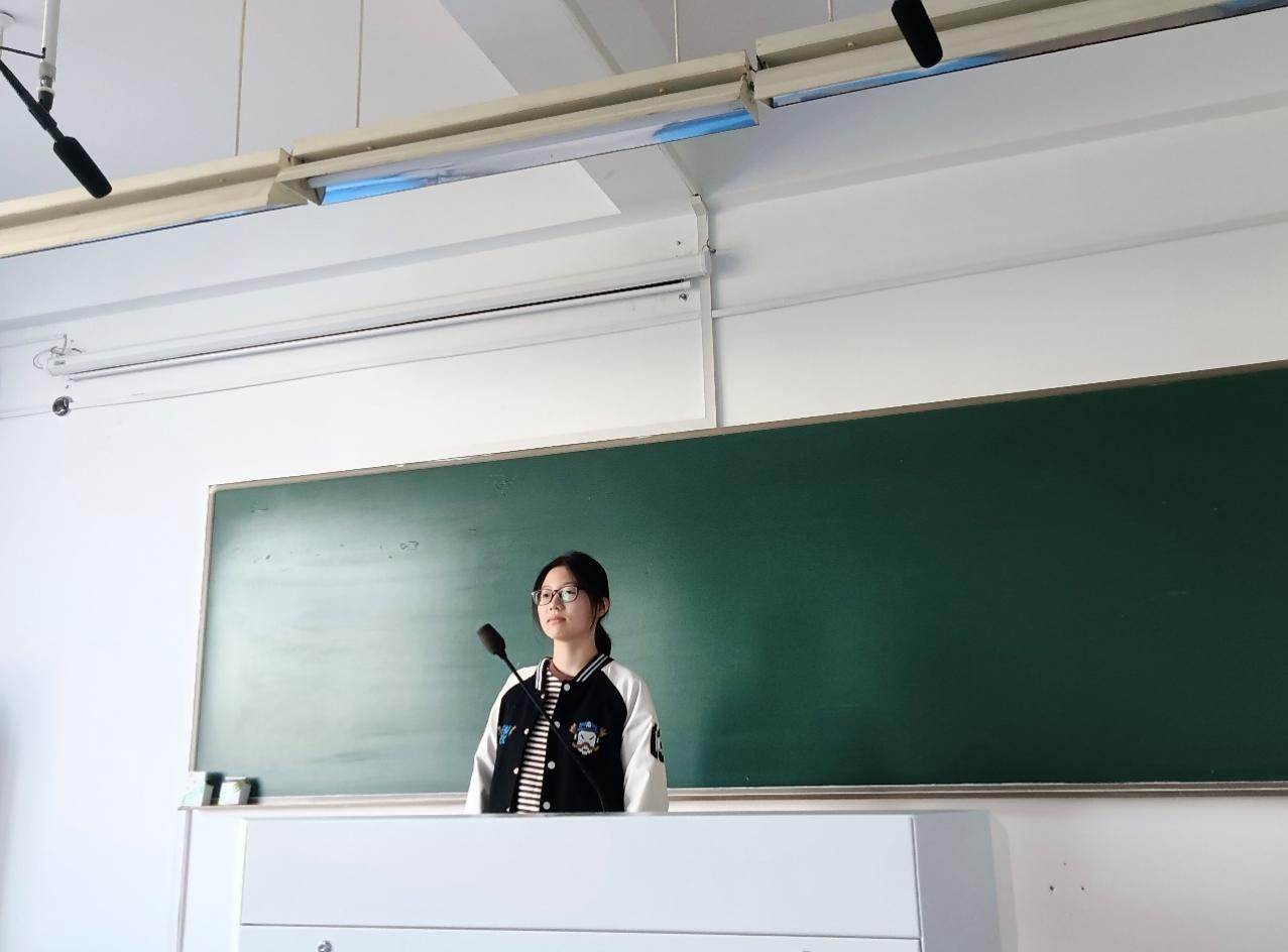 然后,汪炘玥同学讲述了将爱国情怀内化于心的重要性。“对新时代青年来说,热爱祖国是立身之本、成才之基。”再如今的时代,因为互联网的发展,青年们有更多的榜样可以学习,比如“天眼探测星河阔”的南仁东,再说“喜看稻菽千层浪”的袁隆平,又像“蟾宫桂枝携月壤”的嫦娥五号团队,他们都是几个领域的领军团队,支撑着他们这么多年研究的就是深厚的爱国情怀,对祖国赤忱的爱会转化为向前发展的动力,会成为美好未来的最坚实基础。