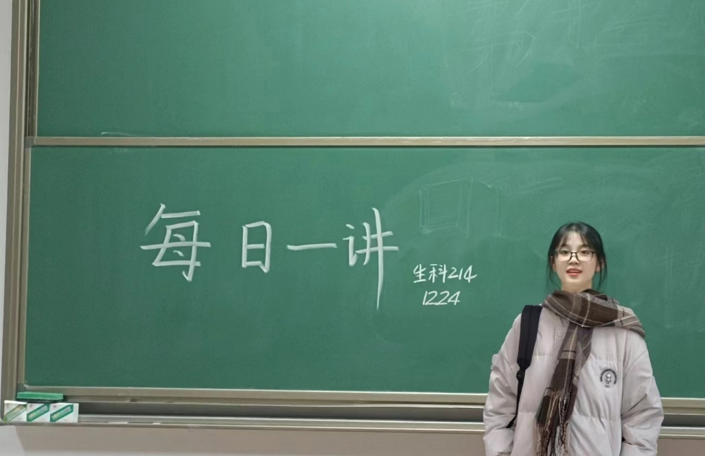 2023年12月25日,生技232班的林怡梦同学在B号楼216教室,进行了以“深化科研能力,加强科技创新”为主题的每日一讲活动。