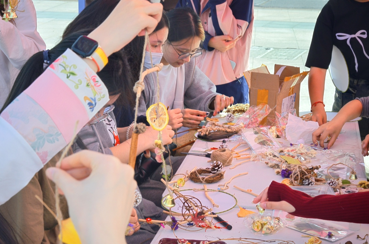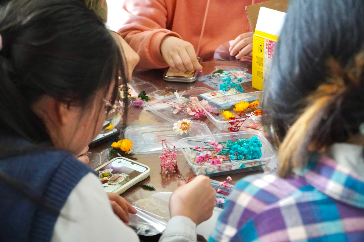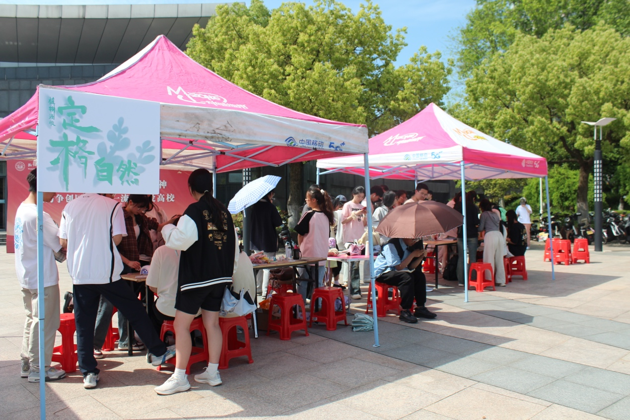 本届春日游园会通过套圈答题、驱蚊香包、团扇绘制、干花书签、植物滴胶、浮游花瓶、植物喷绘、落叶风铃等一系列活动,为同学们提供了全方位、多层次的学习体验与丰富多元的实践机会,让他们在感受生物的魅力的同时,增长知识、陶冶情操。