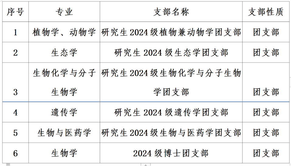 | 1 | 植物学、动物学 | 研究生2024级植物兼动物学团支部 | 团支部 |
