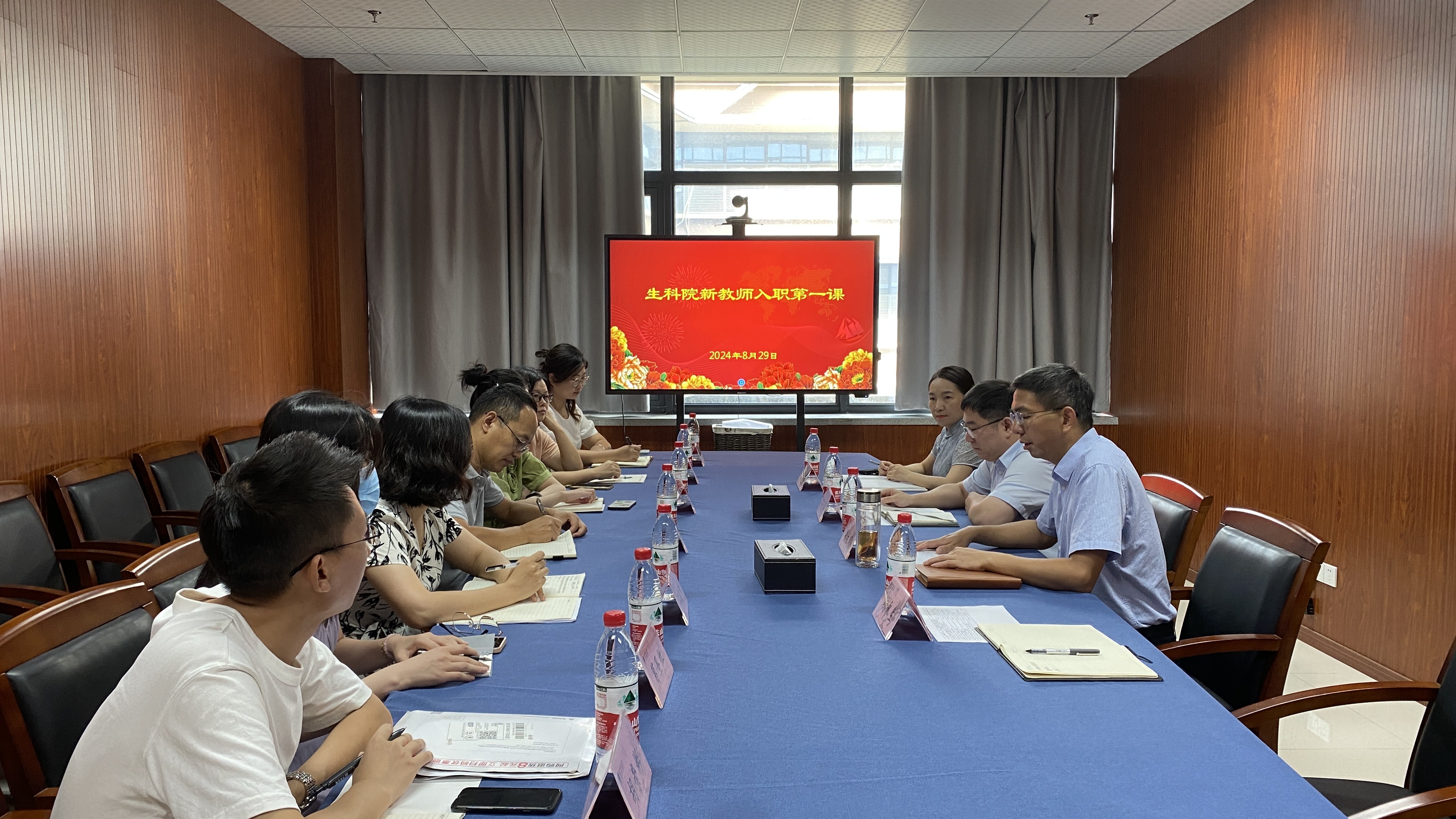 8月29日,学院新入职教师座谈会暨入职第一课在学院15-312会议室举行。院长薛大伟、党委书记张立明、党委副书记兼纪委书记王倩和7名新教师出席会议。会议由学院党委书记张立明主持。