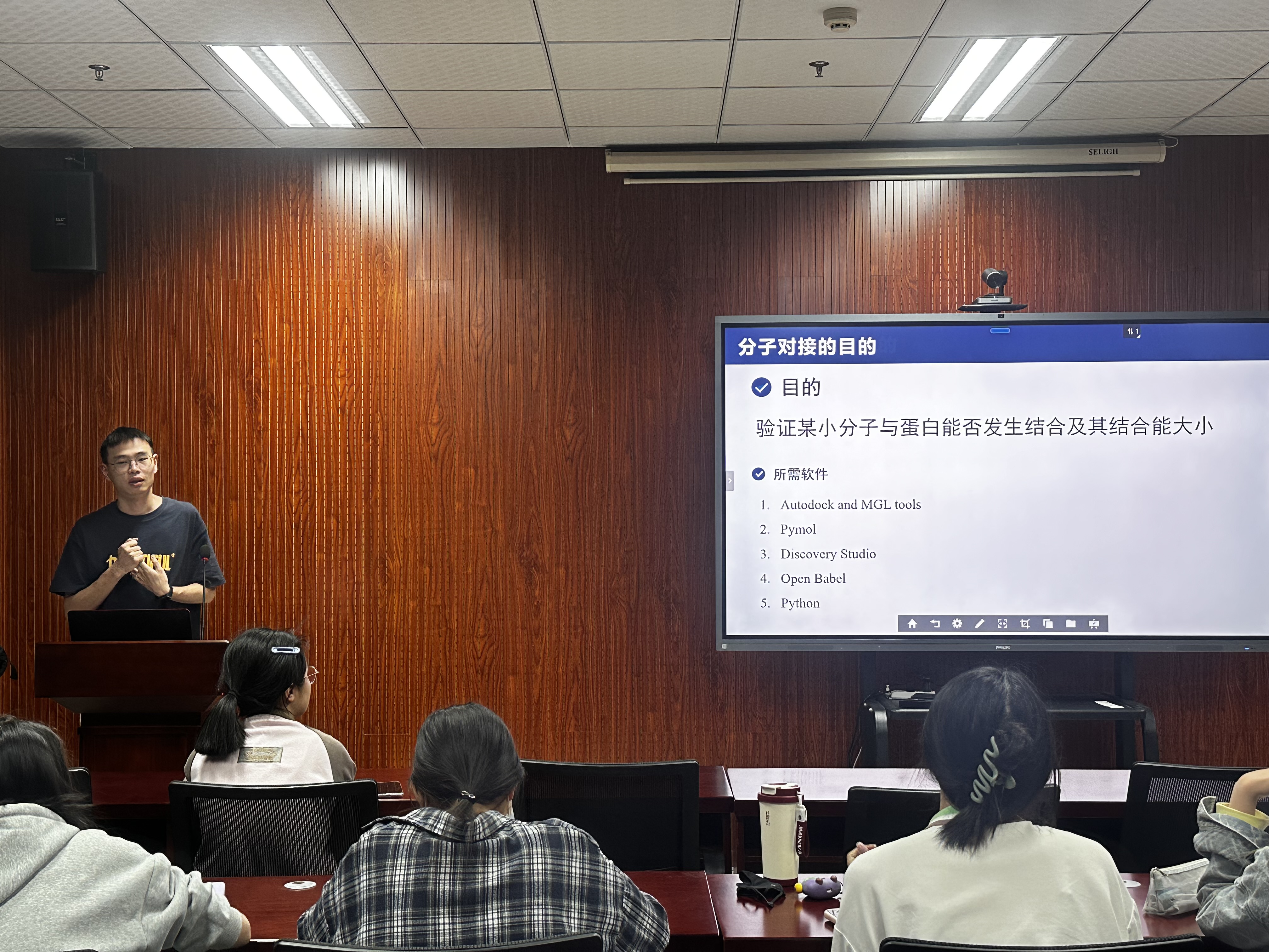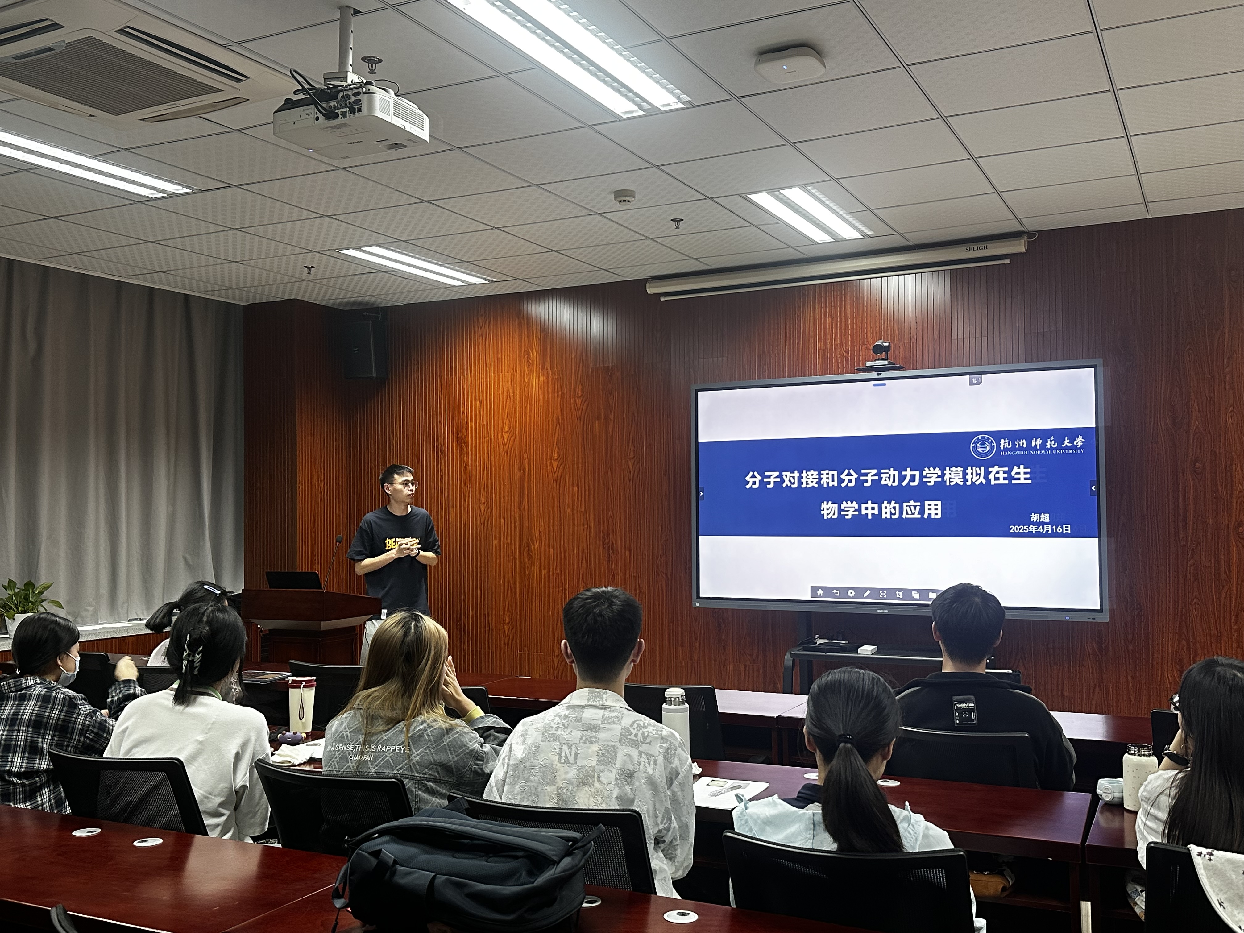 本次报告兼具理论深度与实操指导,以“理论讲解+流程拆解+案例演示”的形式,构建了分子对接与动力学模拟的完整知识框架。胡超博士以深入浅出的讲解,带领拔尖班同学领略了计算生物学技术的魅力。从基础软件操作到前沿模拟技术,从数据库检索到结果可视化,层层递进的内容不仅为科研新手提供了入门路径,也为同学们拓宽了科研新思路。随着生科创新人才菁英讲堂的持续举办,学院将进一步搭建学术交流平台,助力同学们在交叉学科领域探索创新,提升科研竞争力。(图/文 生科232 袁越)