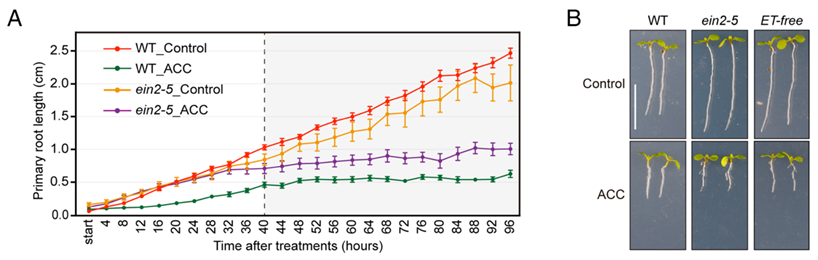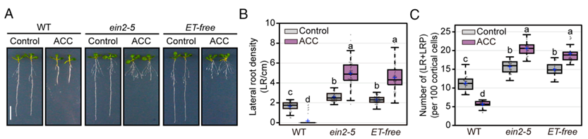 综上所述,该研究不仅有助于区分ACC与传统乙烯信号在植物生长发育中的调控差异,也为ACC独立生理调控功能的研究提供新见解。