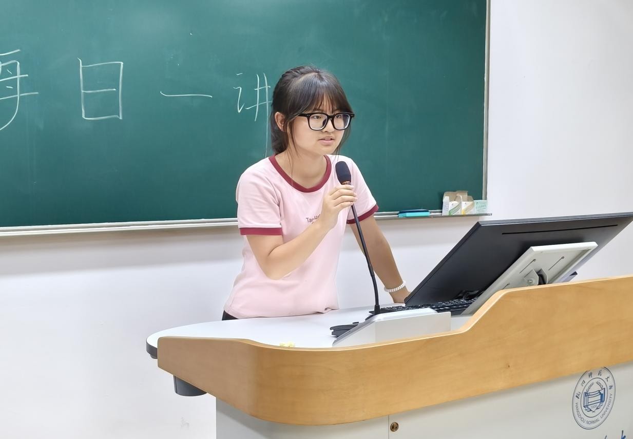 2025年10月10日,袁诗涵同学在老王论坛 仓前校区慎园301教室进行了以“锦绣山河披盛景,盛世华章庆国诞”为主题的演讲。