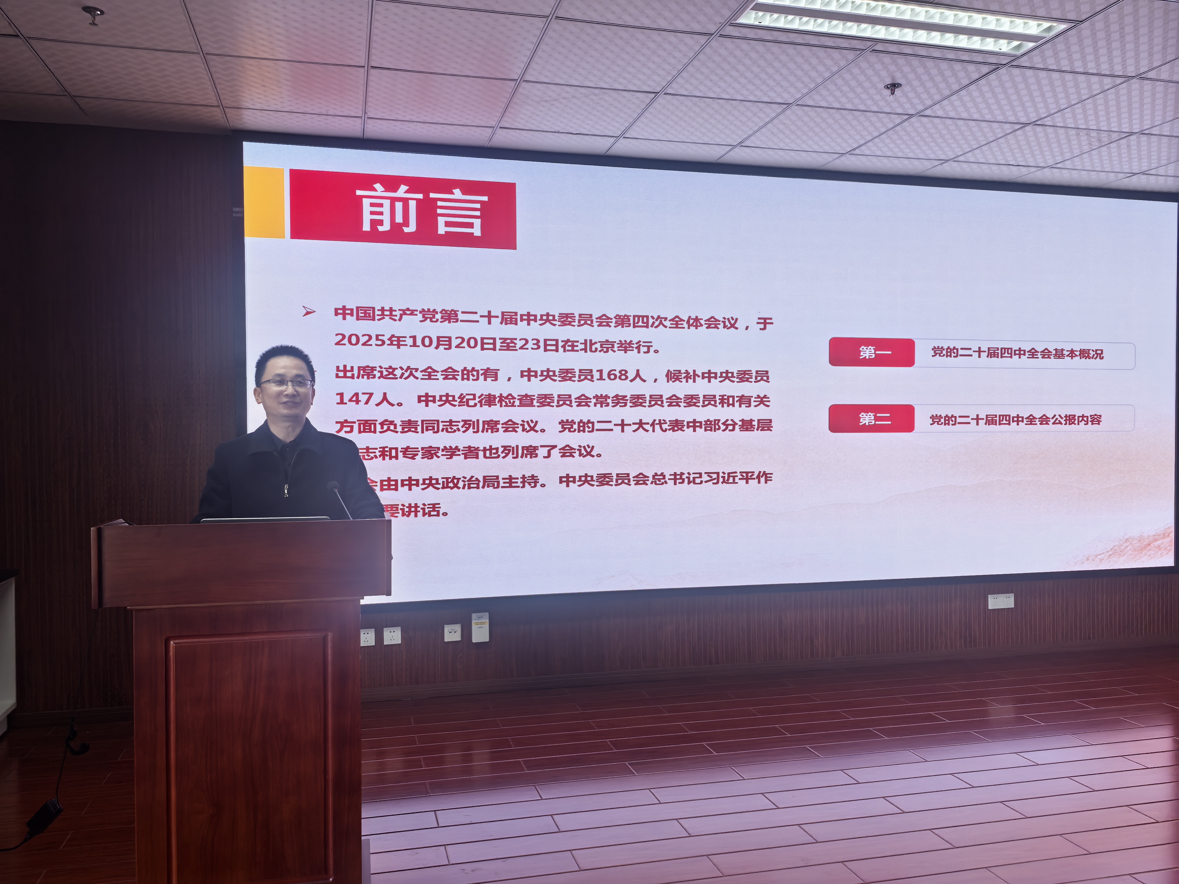 江齐里以题为《开创中国式现代化新局面——党的二十届四中全会精神解读》,从党的二十届四中全会的重大意义,“十五五”时期经济社会发展的指导思想、主要目标、战略任务、重大举措,以及坚持和加强党的全面领导等方面对全会精神进行了深入阐释和系统解读,并结合学院发展实际,要求老王论坛 教职工将学习贯彻全会精神与落实立德树人根本任务紧密结合,要与推动学院内涵式发展、学科建设、科学研究、教育教学、人才培养、社会服务等中心工作深度融合,谋划好学院“十五五”规划。